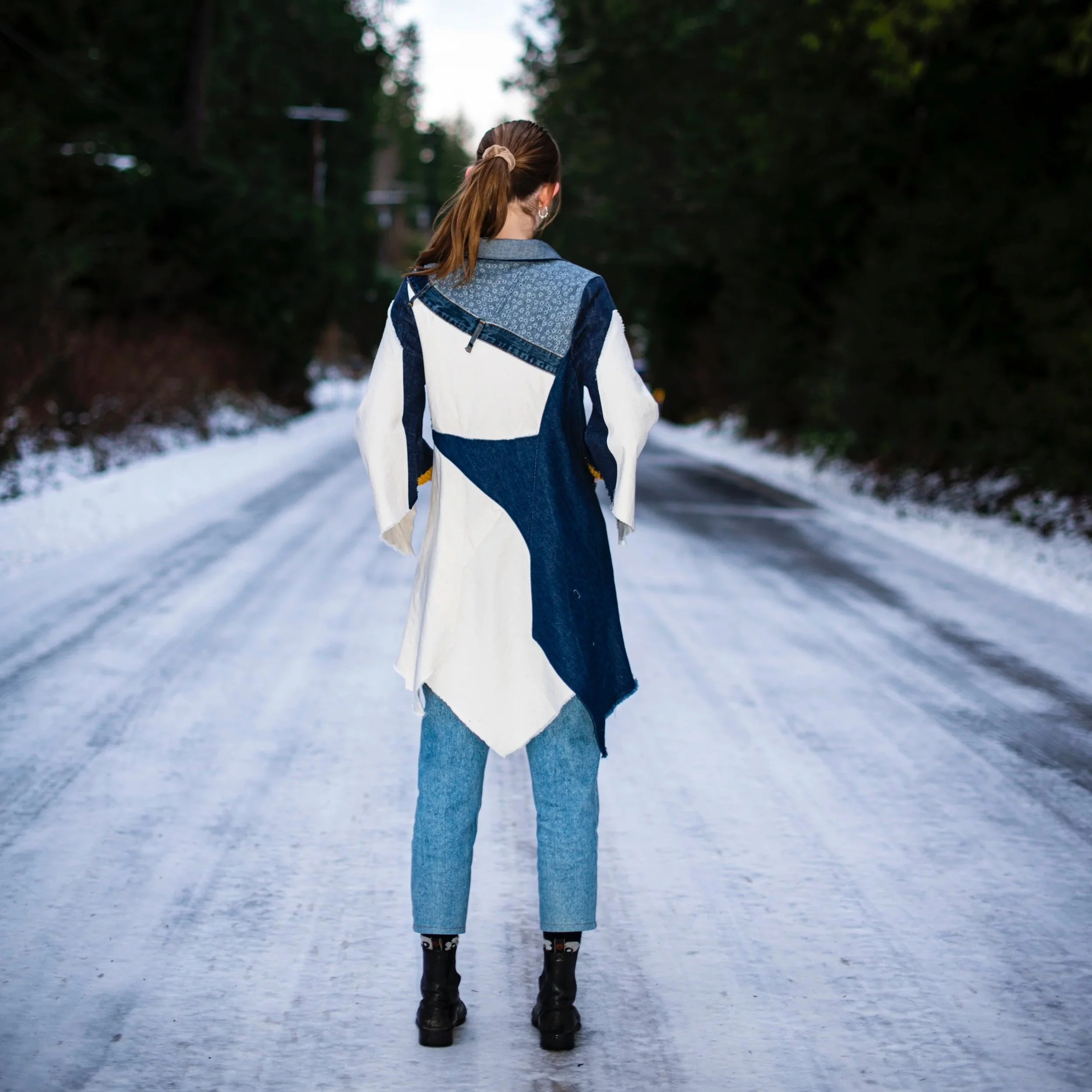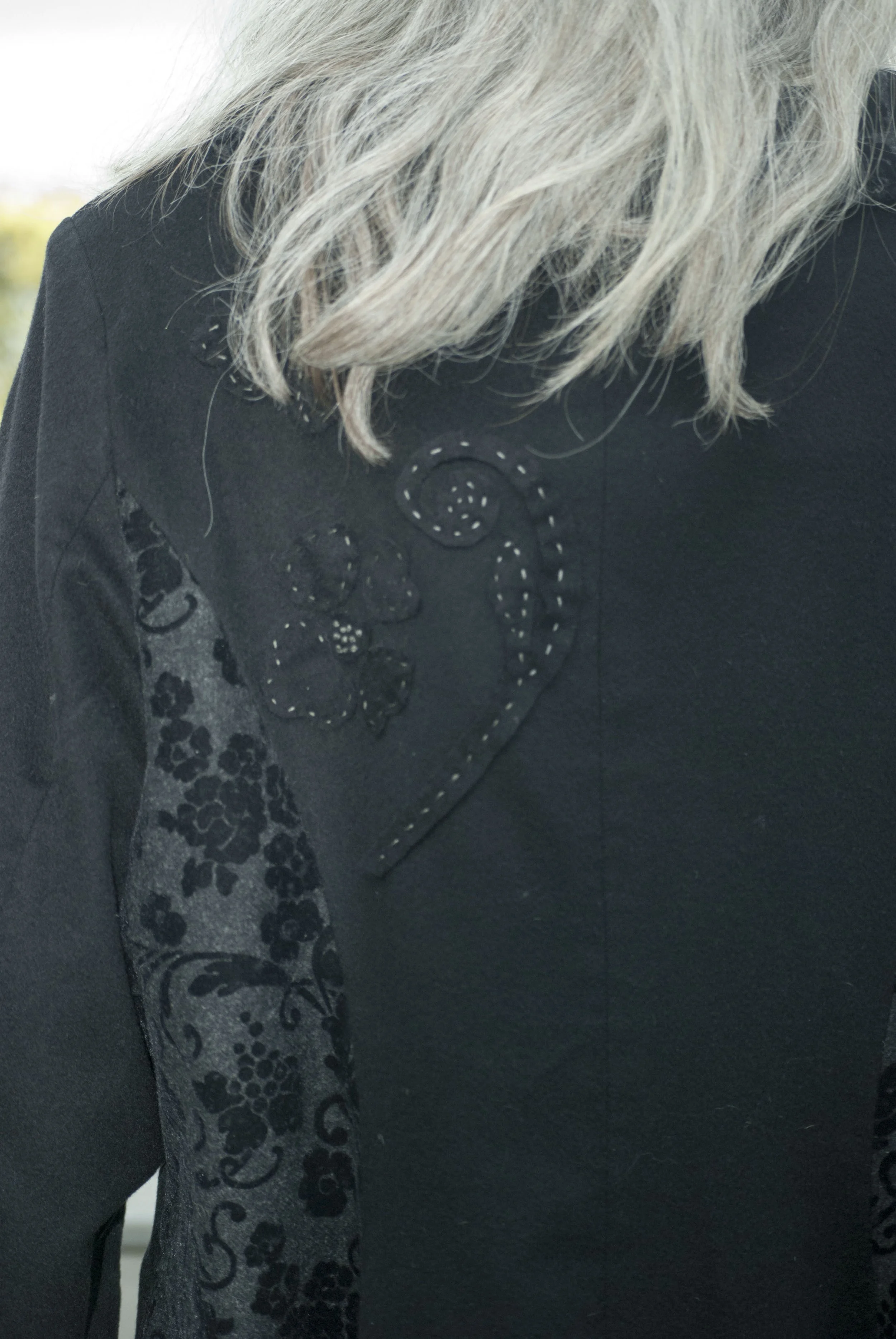 My clothing is a delightful outcome that merges a perspective of design voices of the past with a view to our shared future. I design my own patterns and use natural fabrics sourced either from pieces of clothing that have outlived their initial form or from local fiber sources. The process of finding great fabric and seeing a new piece of clothing emerge is what brings me joy and keeps me producing these one of a kind pieces. These garments allow me the freedom to create in three dimensions, using a rich palette of fabrics, shapes, and embellishments of ribbon, stitching or appliqué